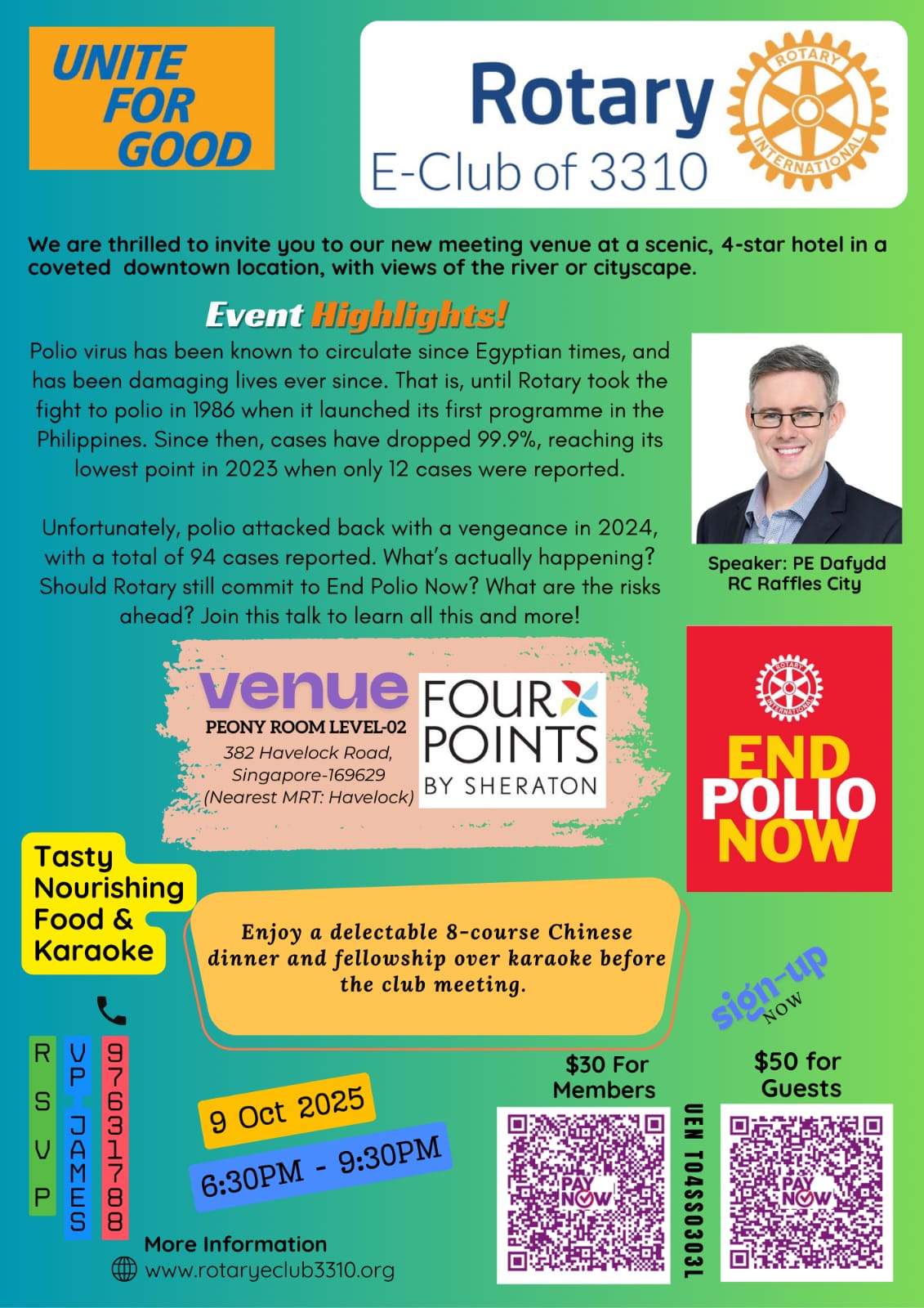 Who Should Attend:All Rotarians really, reducing polio cases by 99.9% is something we should all be proud of, and be an example of what Rotary can achieve.